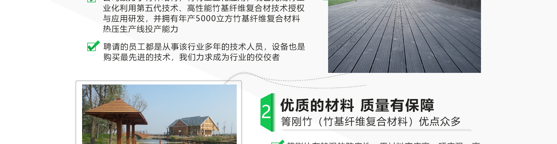 宣城宏宇竹業有限公司位于“華夏毛竹首鎮”的安徽省宣城市涇縣蔡村鎮,公司致力于竹材工業化應用與研發,已完成竹工業化利用第五代技術-竹基纖維復合材技術應用研發,并獲得2015年度國家科技進步獎二等獎。公司擁有行業幅面3850*1320mm的5400噸壓力的20層熱壓機,可以直接壓制3850*1180*52的坯板,具備年產10000立方米的生產能力。宏宇竹業以“領導竹材恒久價值”為己任,以匠心的工藝,銳意進取的管理團隊打造一個產品多樣化、市場多元化的科技型企業。公司從成立之初一直重視品牌建設,公司注冊商標“箐剛“竹,致力打造戶外竹材優異品牌,讓宏宇竹業深入每一個消費者的心。